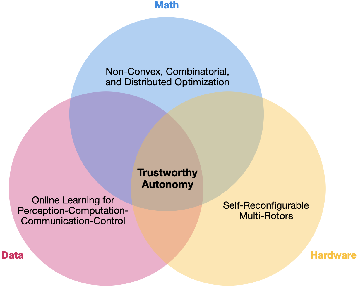 I care for a trustworthy collaborative autonomy in changing, unknown, and adversarial environments. I care for impact on safety-critical applications, such as: